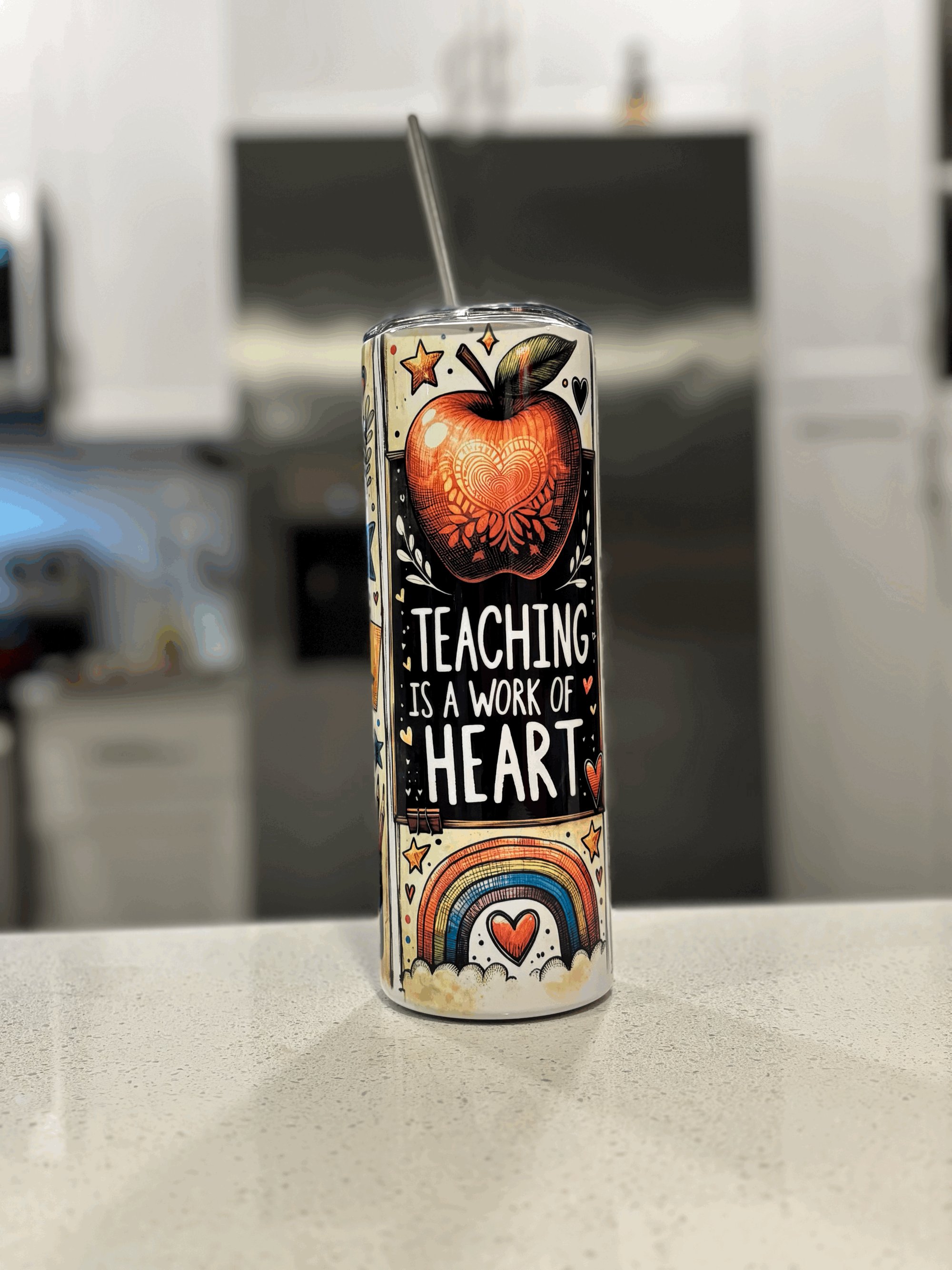 From apples and rainbows to inspiring phrases like “Teaching is a Work of Heart” and “Best Teacher Ever,” each design is made to bring smiles, encouragement, and a little extra caffeine support throughout the day.